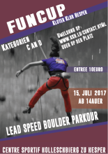 Le FUN4MASTERS est une compétition-challenge amicale, individuelle et conviviale, sur 2 jours, dans 2 salles différentes : celle du KSE à Ettelbruck et celle de l’ESCALE à Arlon. Dans chaque salle, de nouvelles voies seront proposées aux participants. Il s’agira pour ceux-ci de grimper chaque voie, le plus haut possible.